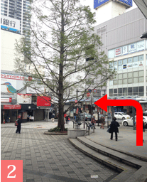 左に進むとアーケード街があります。アーケード街に進んで下さい。