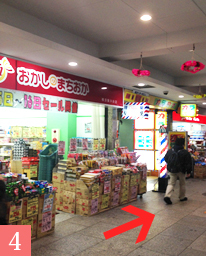 アーケード街を進むと、おかしのまちおかさんがあります。