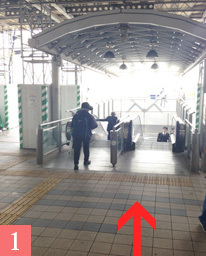 横須賀中央駅東口で出て左側すぐにある,エスカレーターで下ってください。