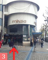おかしのまちおかさんの横に階段があります。3階まで上がってください。